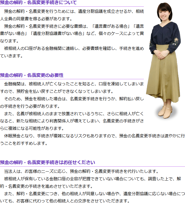 また、預貯金の名義変更は手続き自体も金融機関ごとに異なるため、都度調べて対応するという手間がかかります。